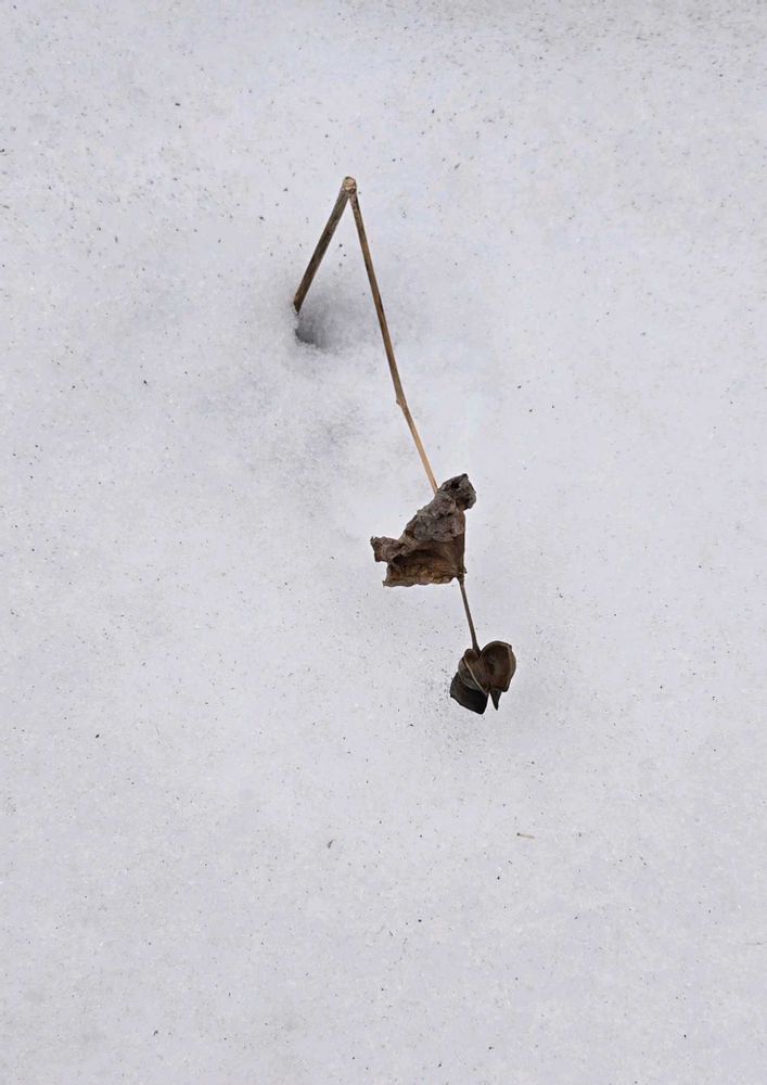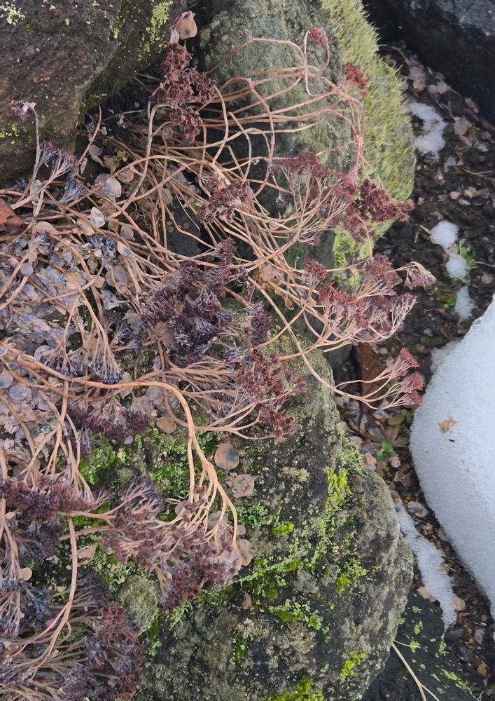 降っては融けての繰り返しそろそろの根雪か?、①あれだけ付いてた実も雪に揉まれてこれが最後、黄実のオンコ②来年の花芽もしっかりヒメモチ③エリモシャクナゲ④ヒダカミセバヤ、この根本にはしっかり来年の芽がスタンバイ⑤すっかり種を撒き終えたシラネアオイ、少し融けた雪から見えた者達。