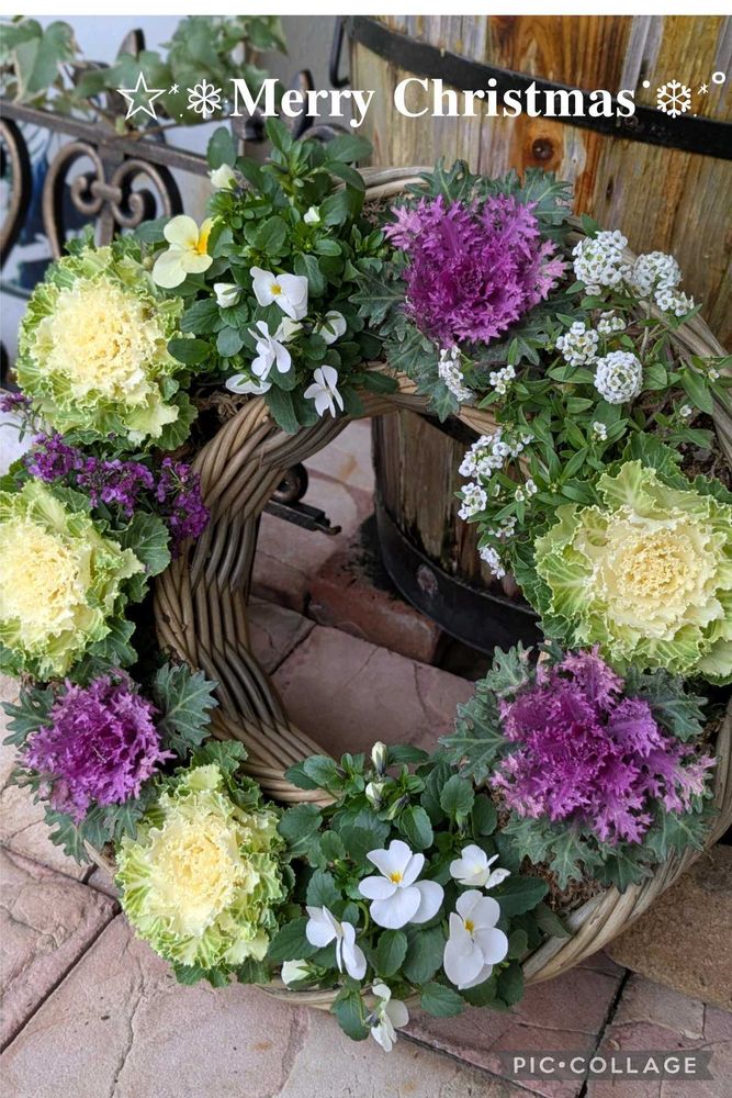 毎年恒例で 今年は色を変えての葉牡丹と左右非対称での寄せ植えに仕立てて 遊び心🤗してみました