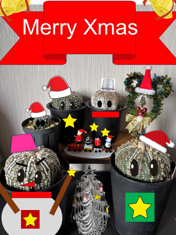 他のサボテンたち(いつものメンバー)が協力してクリスマスを祝いました🎅🎄