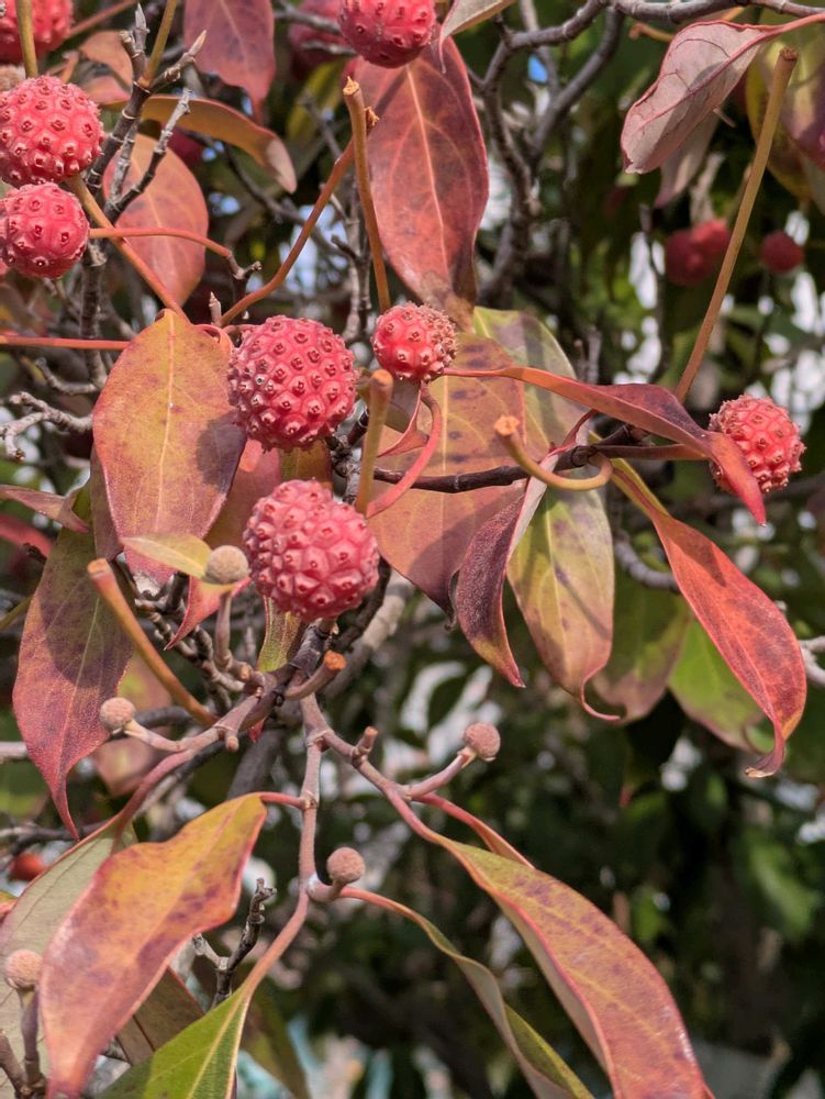 ③ヤマボウシそのたの名前ヤマグルマ ミズキ科 サンシュユ属 まだ花も見られました。種類が色々なのですね。