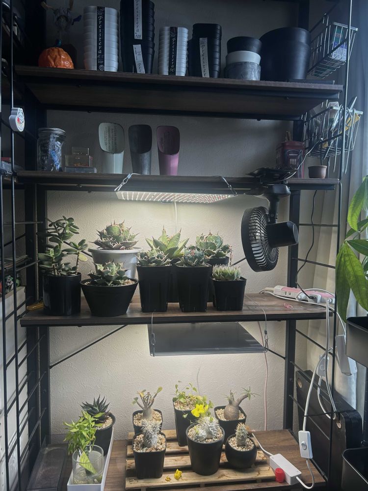 植物棚をチェンジ!育成ライトが斜めなのはご愛嬌……笑