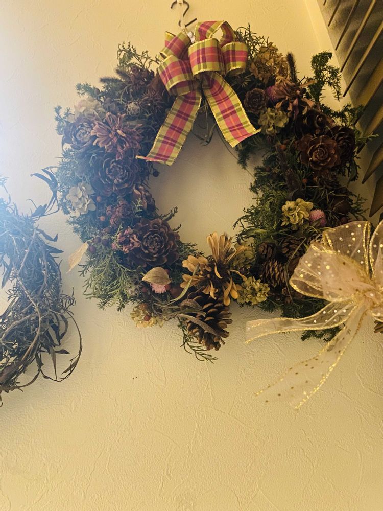 玄関ドアの取り付けフックがゆるんでいたんですね、リース落下していたところを発見したときは声に出さない悲鳴あげました