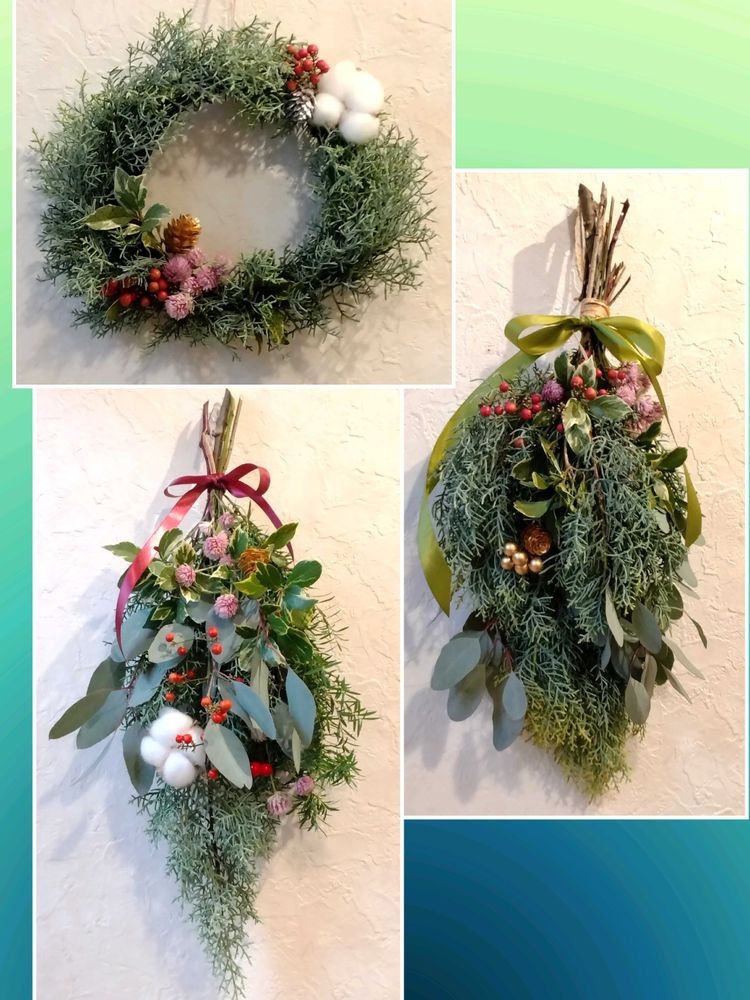 2️⃣スワッグとリースは家の植物と100均の飾りで簡素なものですが🎄😅