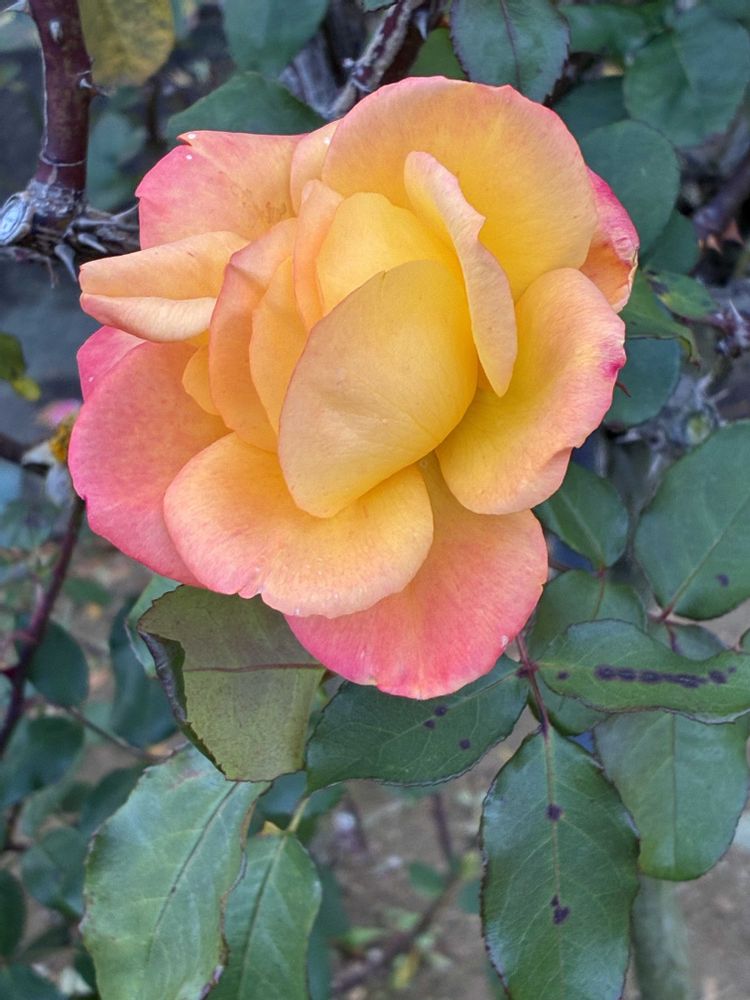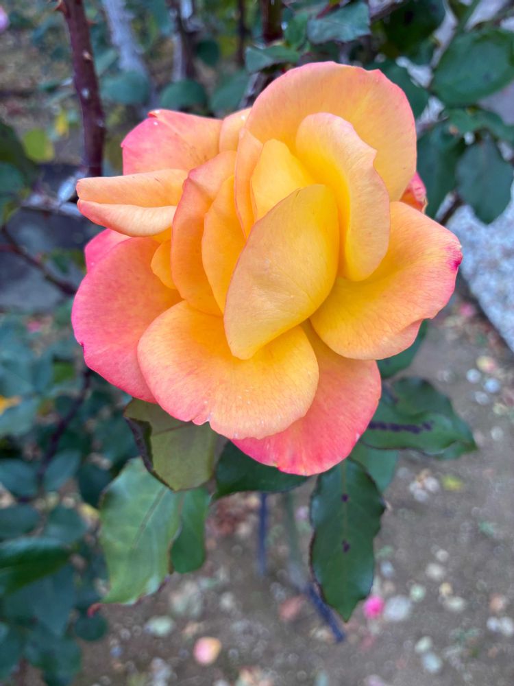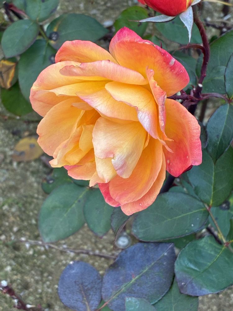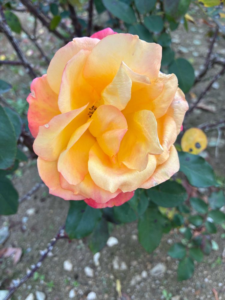 先日、万博公園のバラ園にて、ベルギー🇧🇪製のバラ「アンネの思い出」をパチリ!冬でも元気です。📸🧡🌿🤗😄🌞✌️