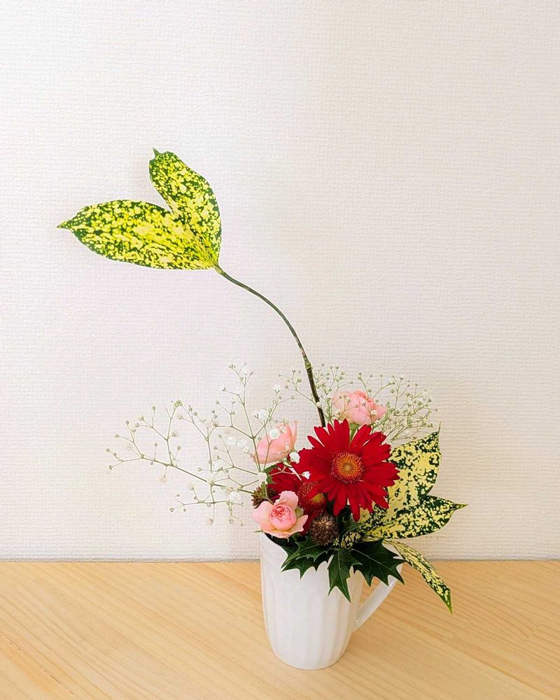 テーマはクリスマスで、花器にする容器を自分で持って来て、それに生けるという企画でした。