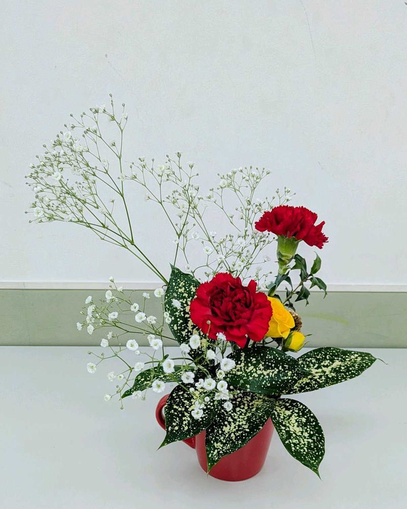 皆さんマグカップなど思い思いの容器で、めっちゃ真剣に生けてらっしゃいました。