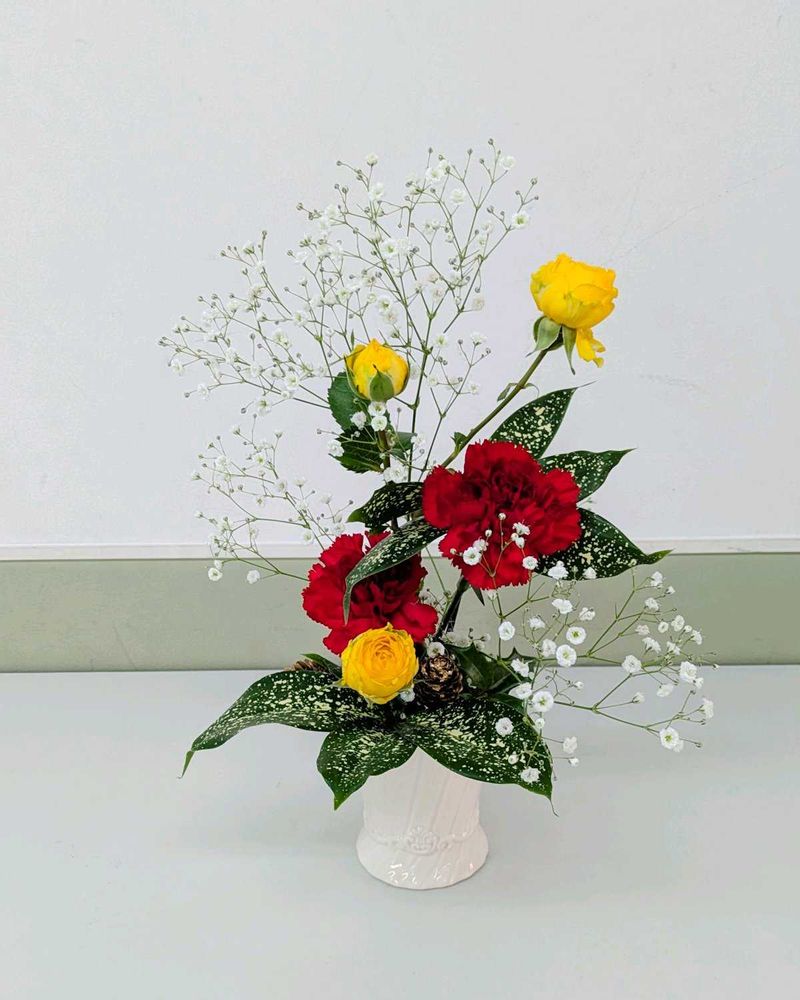 いけばなのご経験は無いとの事でしたが、わざわざいけばなの講習会に来られるということは、やっぱりお花好きで日ごろからお花を生けてらっしゃるのかな?と思いました😊