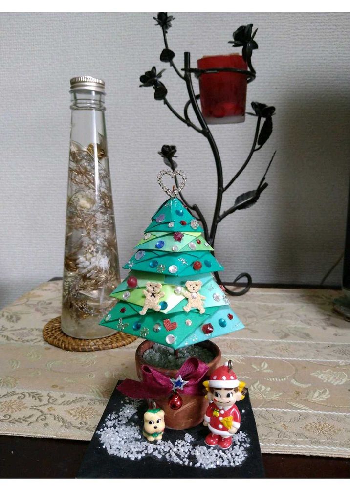 折り紙🎄は6年前くらいに傘の折り方で枚数を減らして作ったの