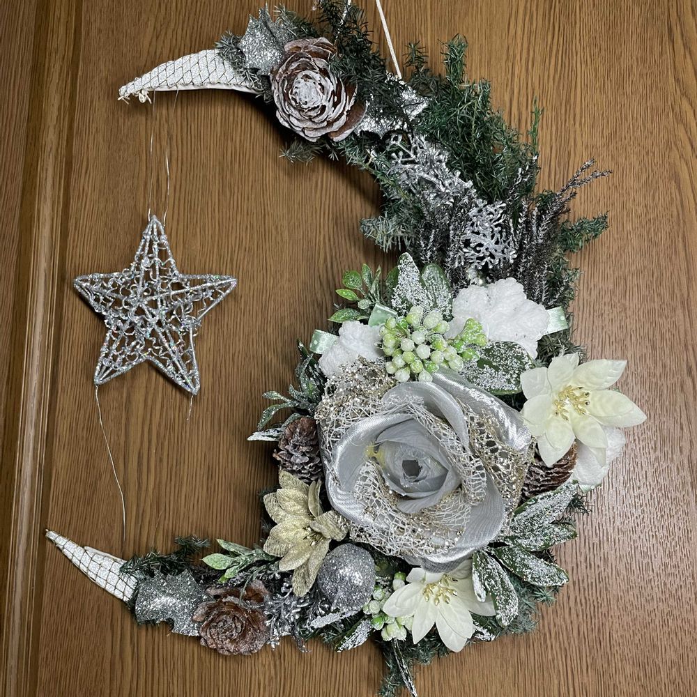 蘭々さんのプリザーブドフラワー,ガラスポット、,三日月リース、の投稿画像