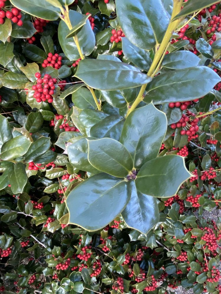 散歩道のセイヨウヒイラギの赤い実です。別名クリスマスホーリーとも呼ばれているそうです。