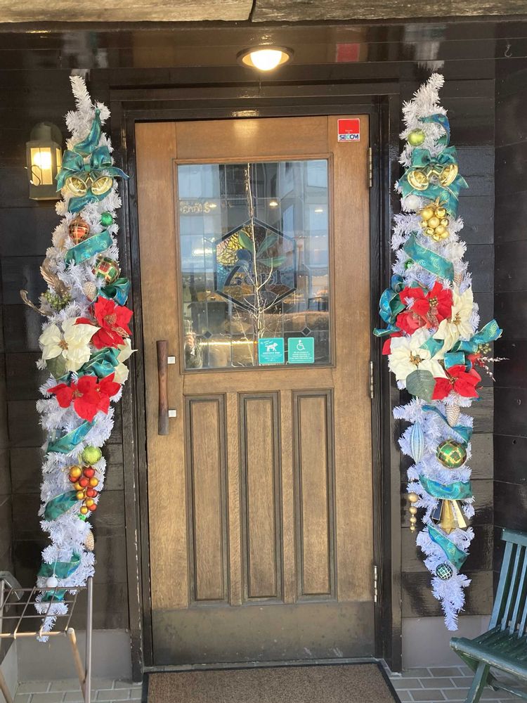 帰省の手土産に、行列ができるパン屋さんで一番人気のカレーパン等を買いに訪れた。 クリスマス色濃い飾りでお出迎え。