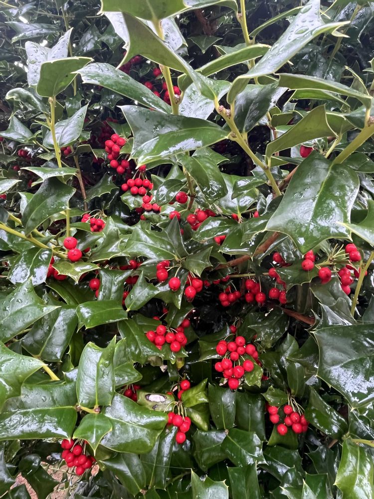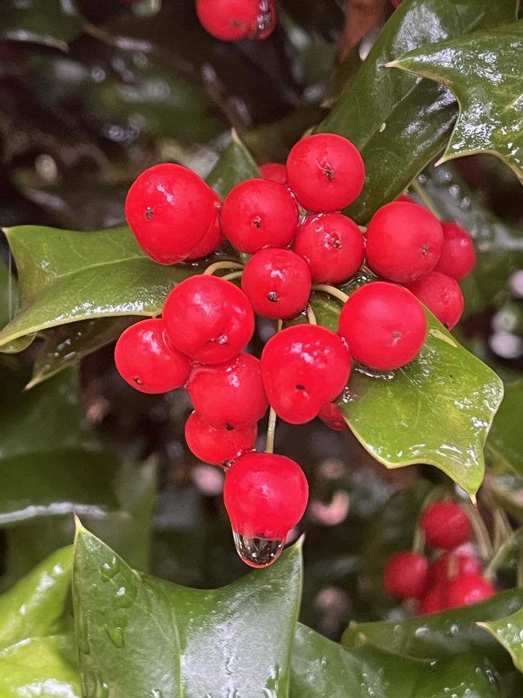 西洋ヒイラギ,真っ赤で,雨に濡れて綺麗だね🤩