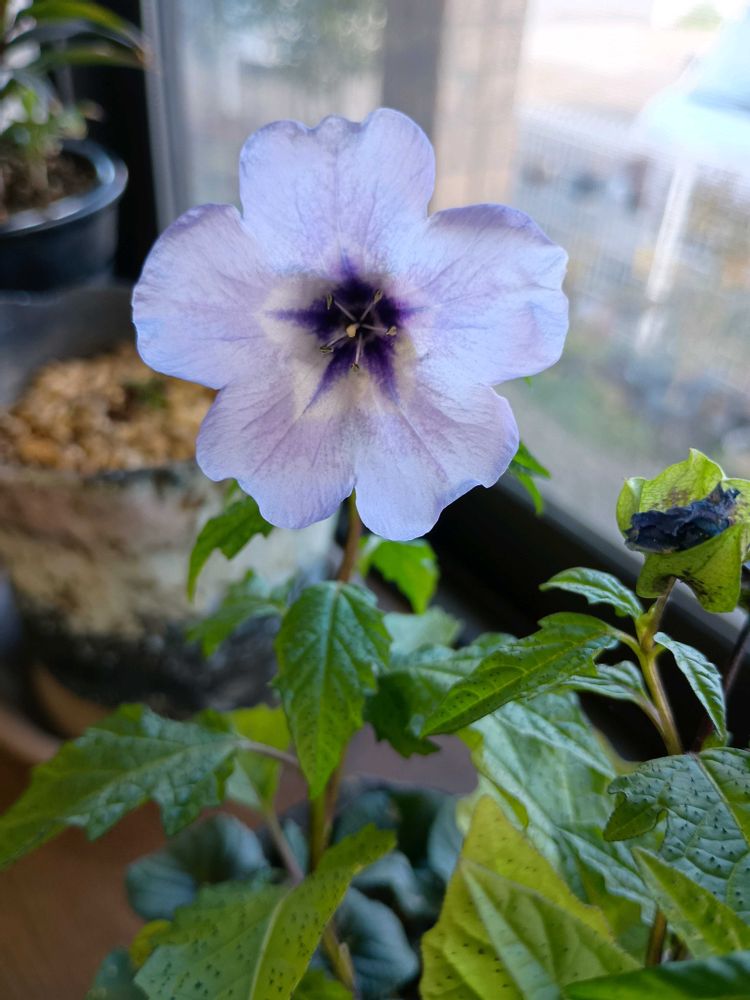 まだ咲いている黒ほうずきが可哀想なので部屋の出窓に置いて有ります