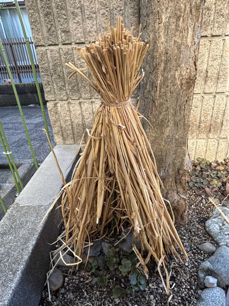 この子たちは20年選手です。玄関の脇に来てからも10年。増えたり、減ったりを繰り返しています。夏の間は、アマドコロの葉陰にいました。枯れたアマドコロを刈り取ってしまったら、冬になって何とも寒そうです。思い付きで冬囲いを試作してみました。風で飛んでしまうので、支柱で押さえます😅