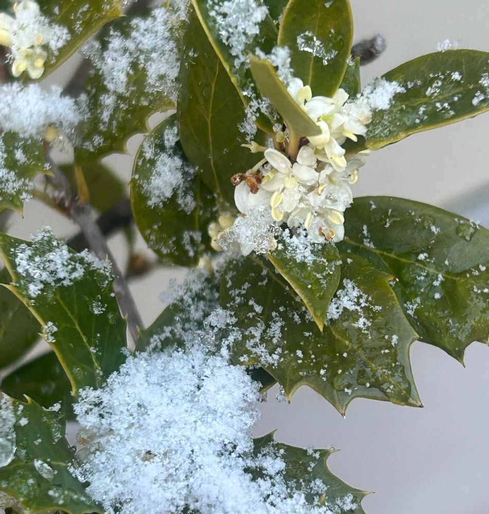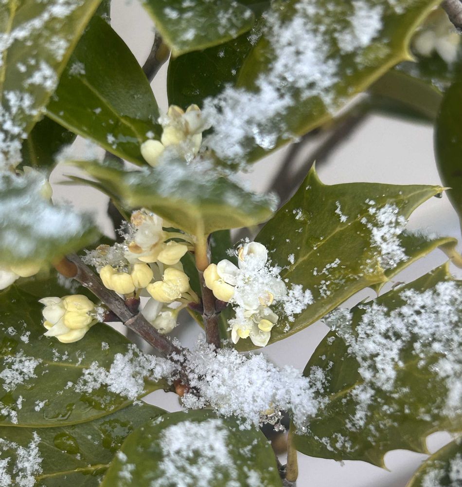 雪の中でさく ヒメヒイラギ🌿.∘