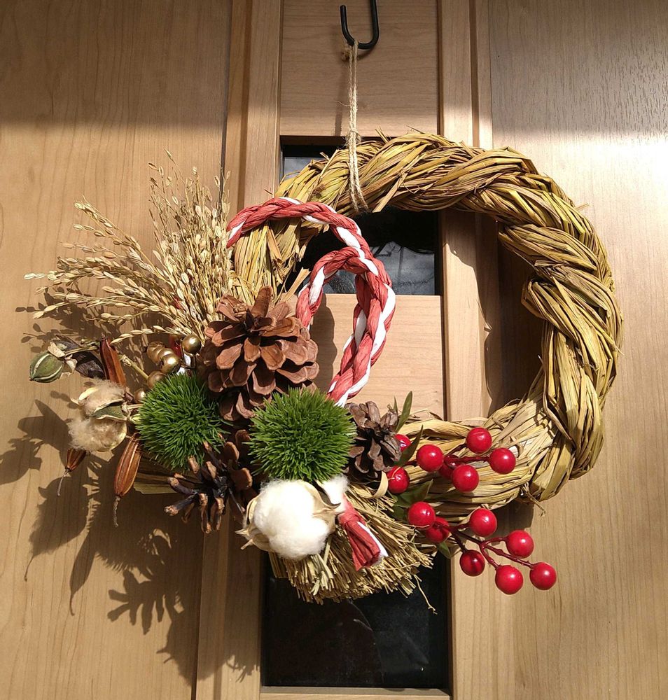 この所レモングラスで作っていましたが今年は稲藁をいただいたのでお米付きの輪飾りを作れました☺️