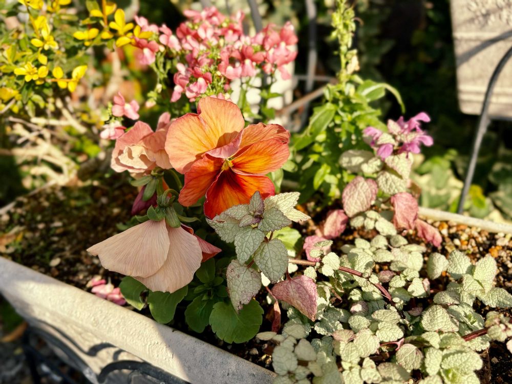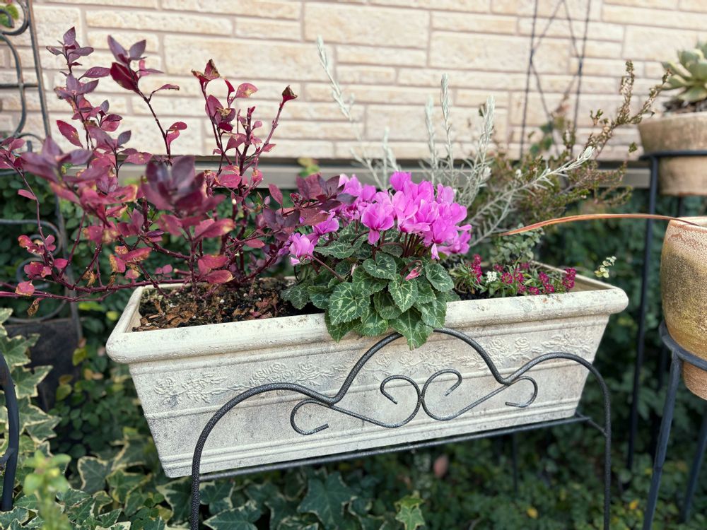寒くなる前に隙間を埋めるには至らなかったけど、1ヶ月前に冬〜春仕様にした寄せ植えです