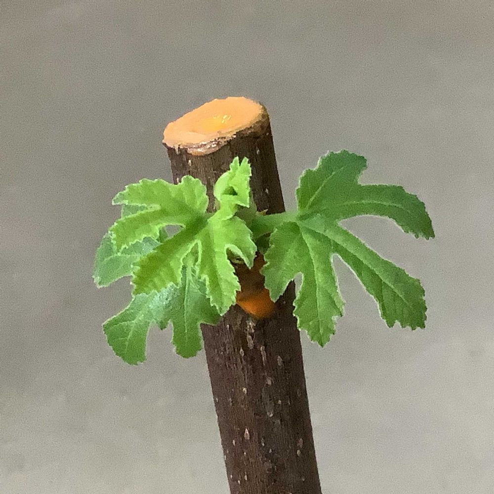 この時に剪定した長い枝をそのまま深めの容器に入れた用土に挿していたところ萌芽して葉が開きました(写真3〜4)