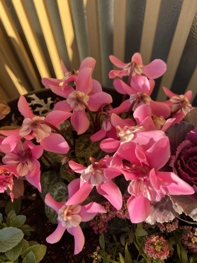 ガーデンシクラメン、おひとり様にするか迷いましたが、ピンクの花の寄せ植えにしました🌸