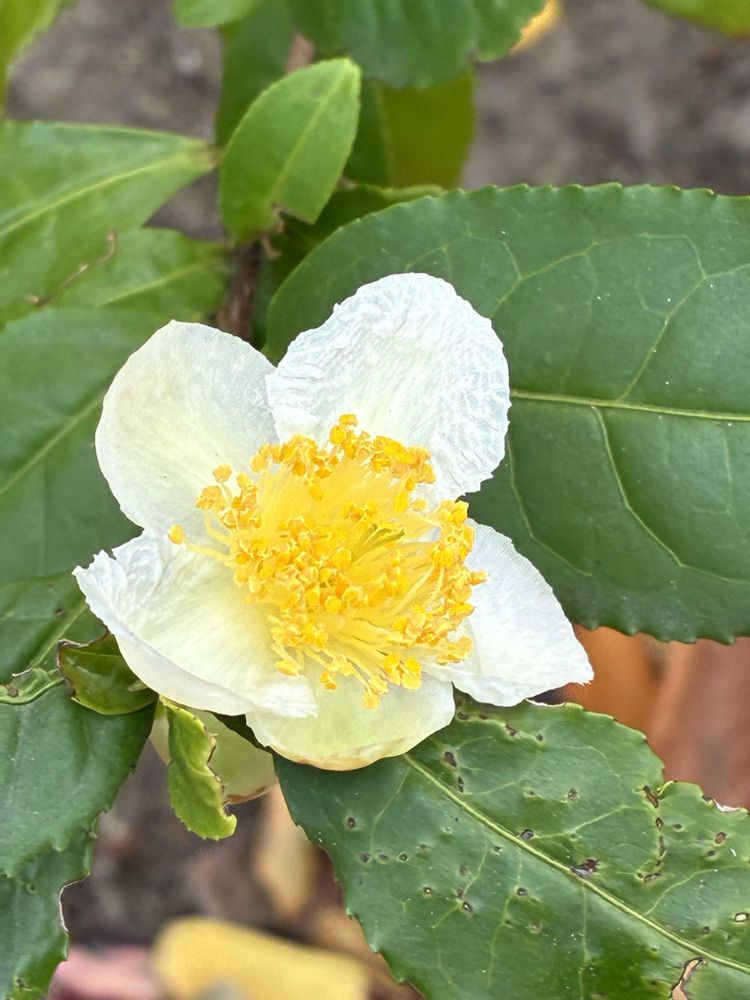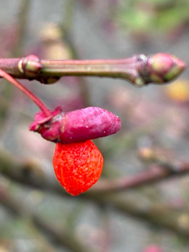 イオンスタイルの植栽で見つけたムラサキシキブとニシキギとトベラの実。そしてチャノキの花。