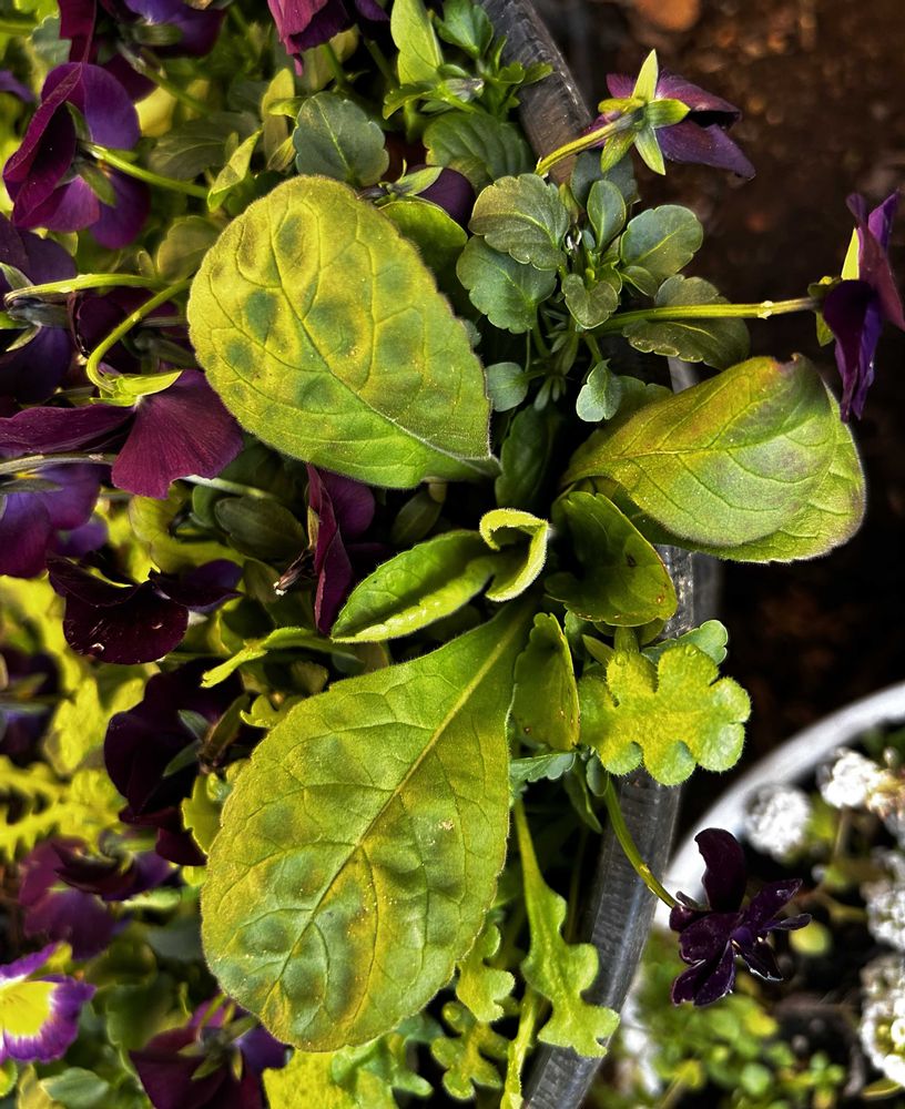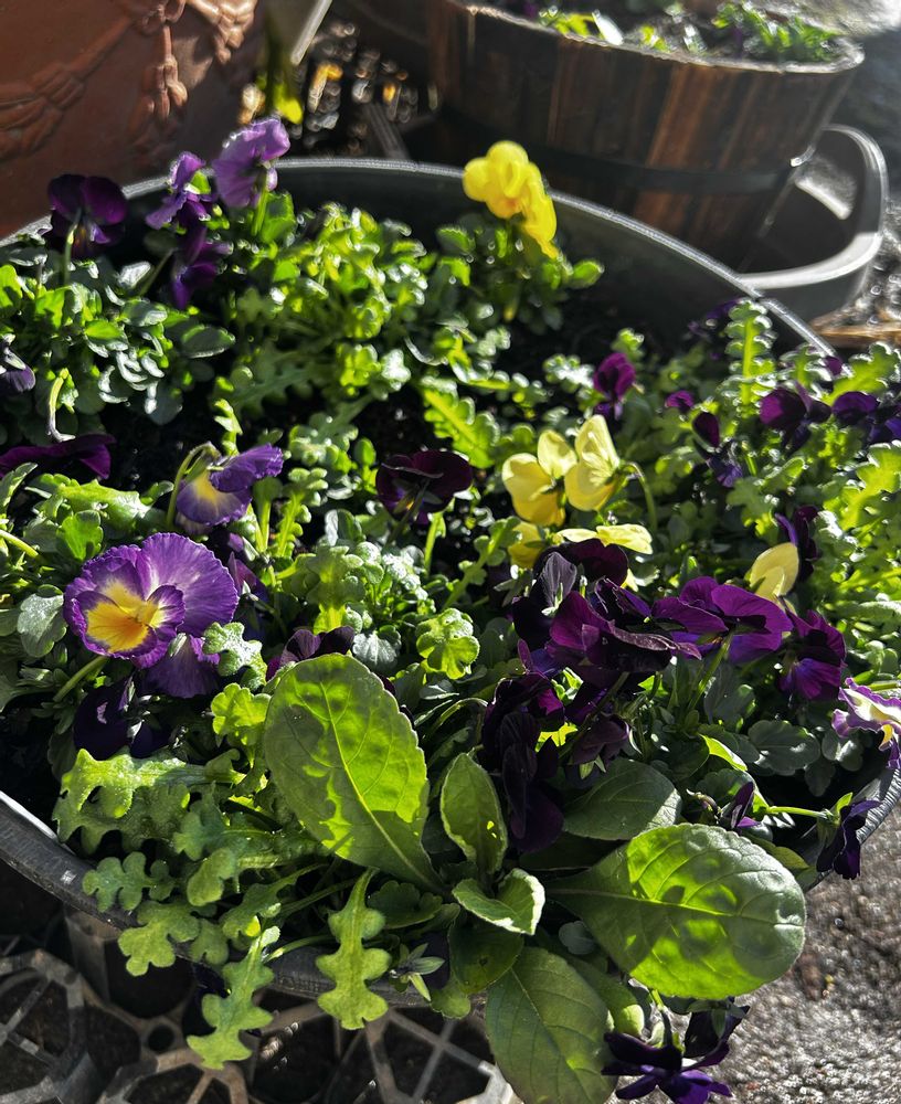 こぼれ種からのブラックビオラ(おととしの種まき)と、ネモフィラ(こちらもおととしの種まき)などでモリモリ状態です。