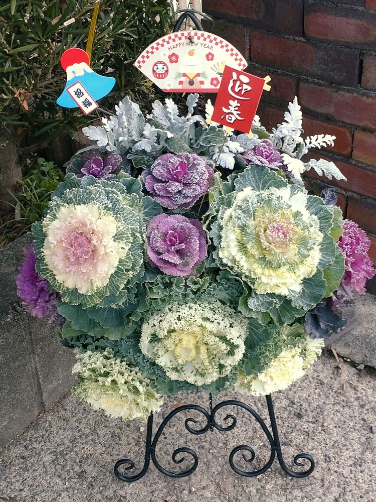素敵なお正月飾りが4つと、葉牡丹の寄せ植えで年神様も喜ばはるよ~🥰💕︎
