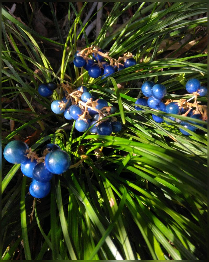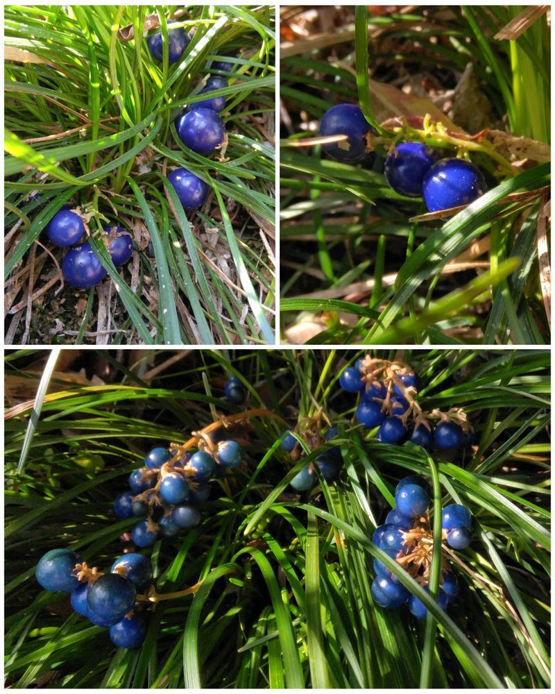 リュウノヒゲの柔らかい葉を、かき分けかき分け、実を出して写しました🔵
