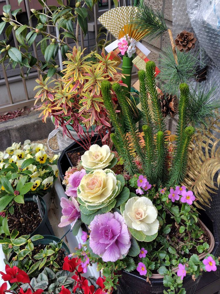 まだバコパが復活できてませんが、強引に正月飾りを挿し込んじゃいました。