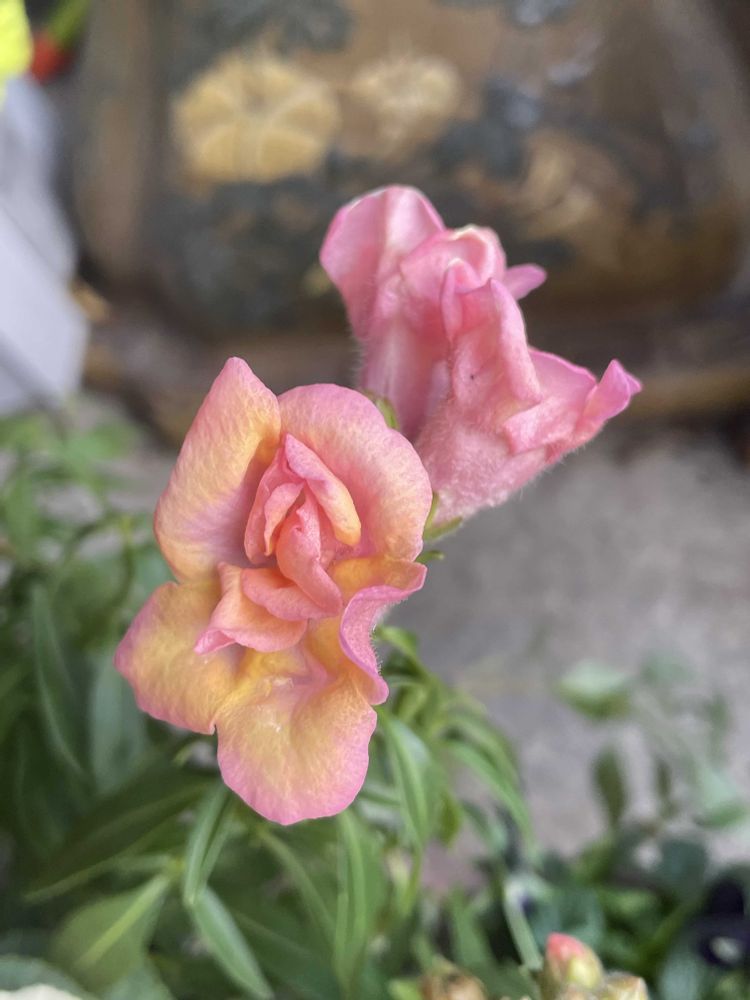 キンギョソウ、半額だった。花を見ずに買ったので、あら!かわいい色じゃん!でした😄