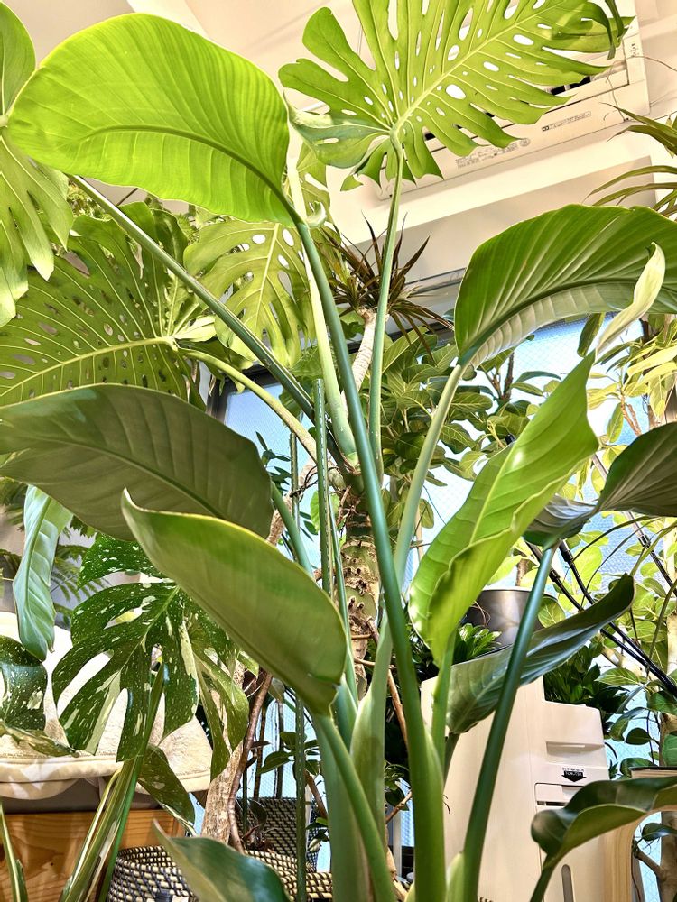 お気に入り😊熱帯植物園 🏝️🐠🌴モンステラデリシオーサとストレリチアオーガスタを並べると迫力が出ます😊常夏🌺🏝️気分😊モーニングジャングル😊