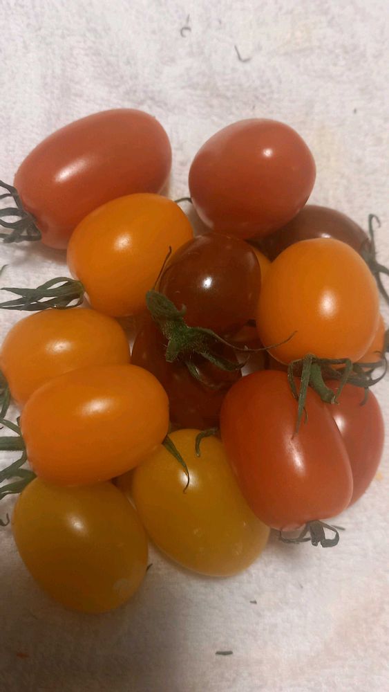 いただき物のミニトマトとキンカンです。色んな色のミニトマトがあるのですね🍅