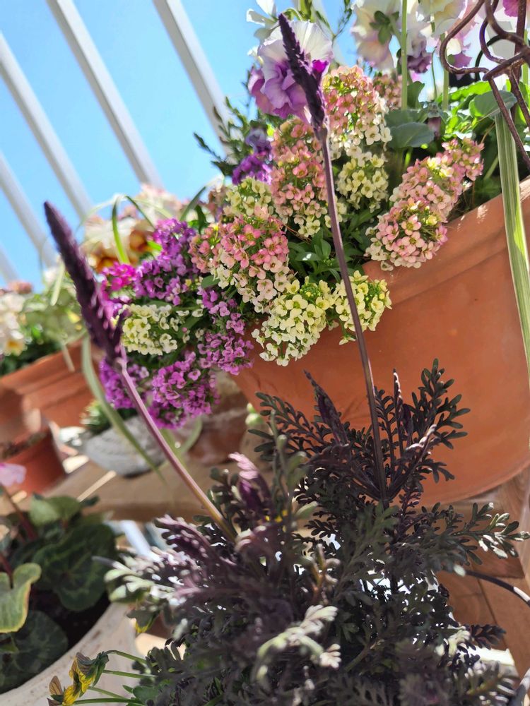 こんな小さい鉢にアジュガとクローバーまで入れちゃって💦