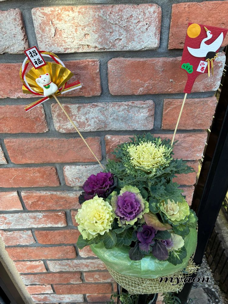 葉牡丹に新年柄ピックですっかり正月気分になりますね🎍