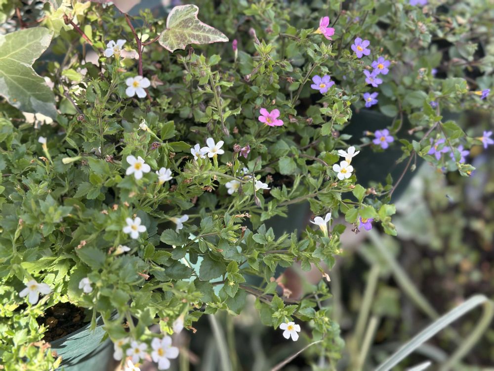 バコパの紫色,先日お迎えしました,霜除して他の植物と同居です🤭