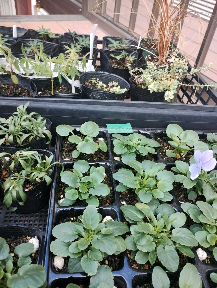 種から育てたビオラ、ルピナス、アリッサム、株分けしたカレックス、ヘリクリサムライムミニ🌱🌱🌱