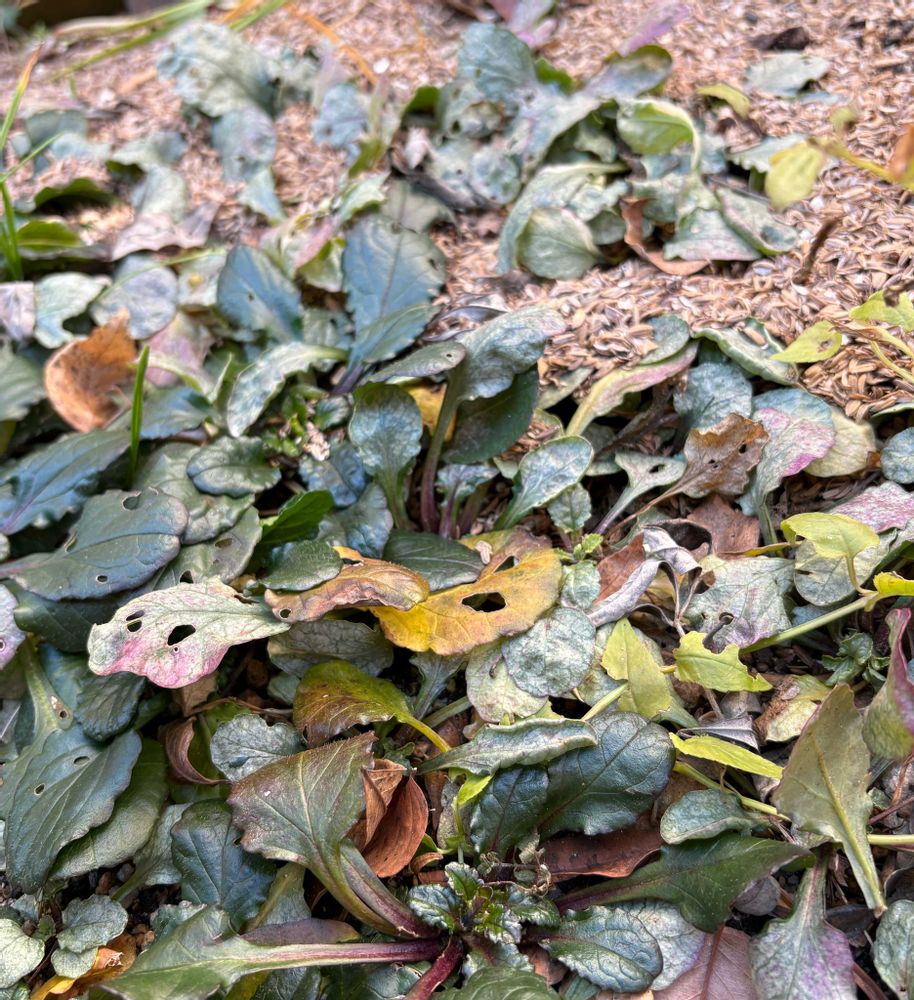 アジュガさんの葉に丸い穴がいくつもいくつもありまして