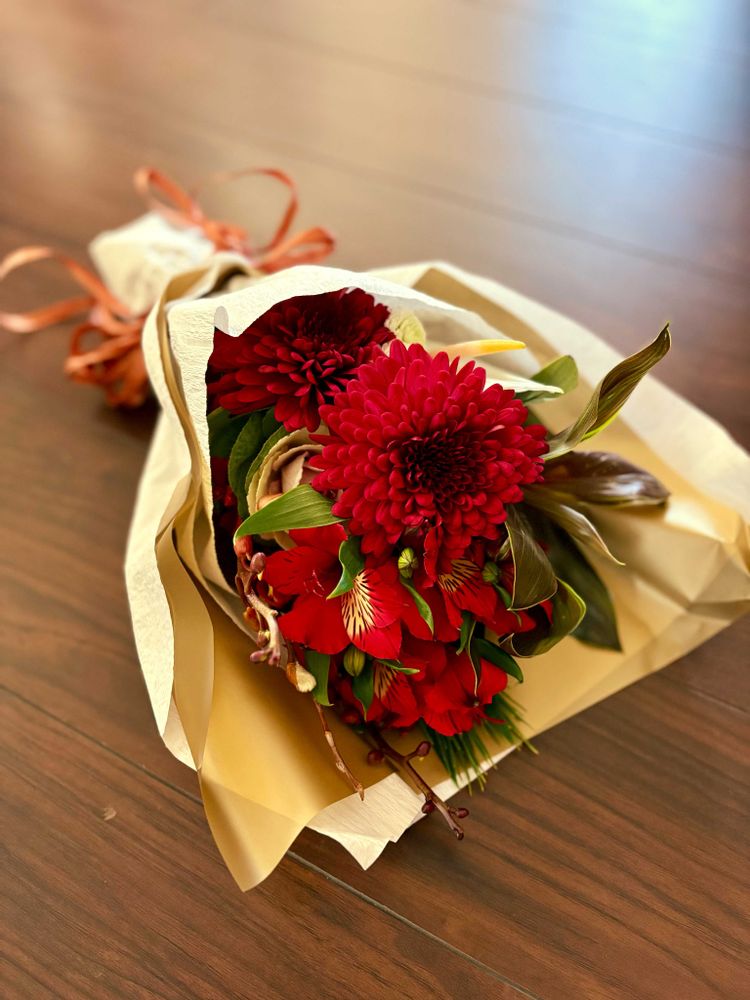 いかにもお正月!というような雰囲気になってしまわないか心配だったけど、これなら発表会の花束でも違和感なくてよかったです。
