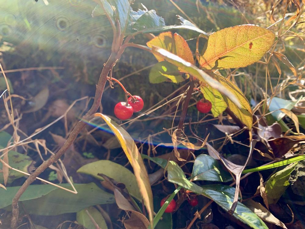 千両はないので十両の実ですが😅💦ウドの畑の残滓の片付け&鹿よけネットに絡んだ雑草の片付けをしました😀タラの木の幼木を刈らないように😀5本ほど生えてました😀スッキリしました😀冬イチゴはドンブリくらい刈ってしまいましたが😅💦