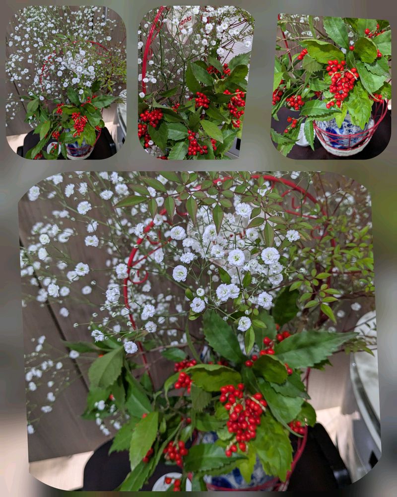 こなゆきさんのカスミソウ,センリョウ,ナンテンの葉.の投稿画像