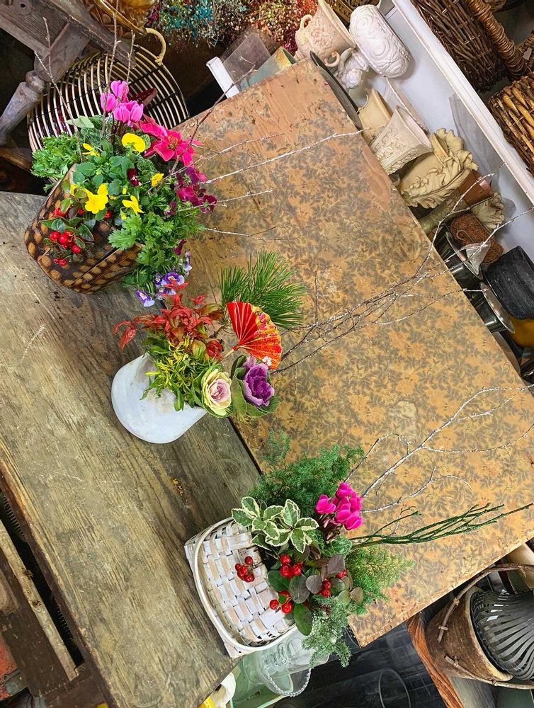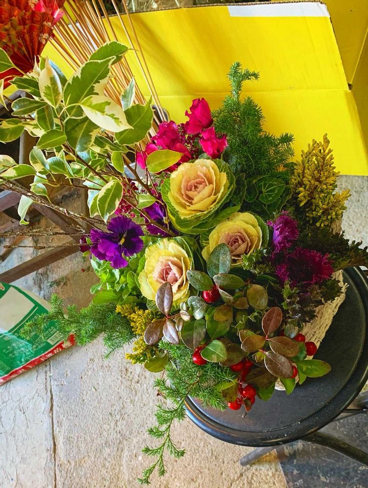 2025年 今年最後のお店でのレッスンは 生徒様ご自身でお店にある器や花を選んでフリースタイルでの寄植え 1年間の総まとめ⭐︎ 腕が試されます^ ^ それぞれが想い思いの素敵な作品に仕上がりました。