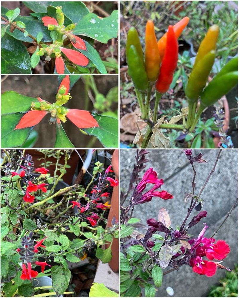 左下、サルビア・コクシネア