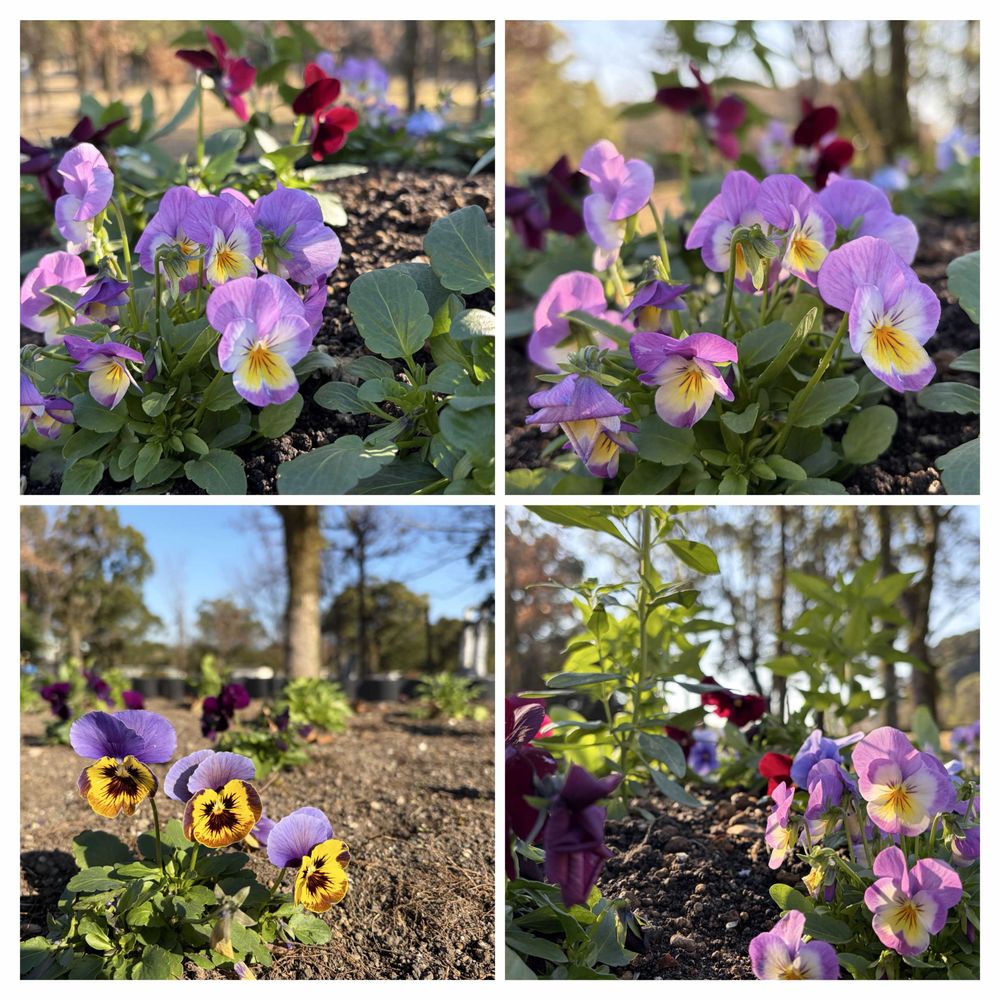 公園のパンジー、赤い実、オキザリス、たくさんの花に包まれて,年越しできそうですね😊