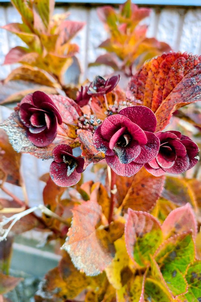 アジサイがこんな🍷赤ワイン色に染まるんですね😃