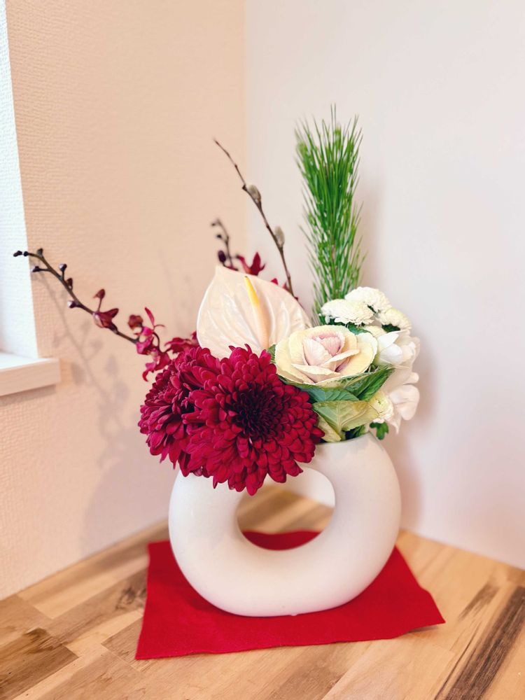 HitoHanaさんのお正月ブーケの一部と、家にあったお花で組み合わせました。