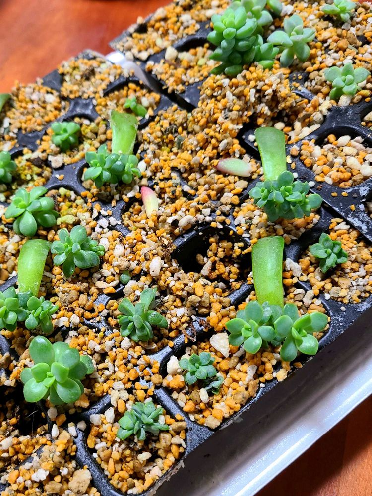 こんにちは~!ちぎって置いてた葉っぱ、ほぼほぼ子株になりましたね~。マッコス強くて可愛くて優秀な多肉さんですね~笑