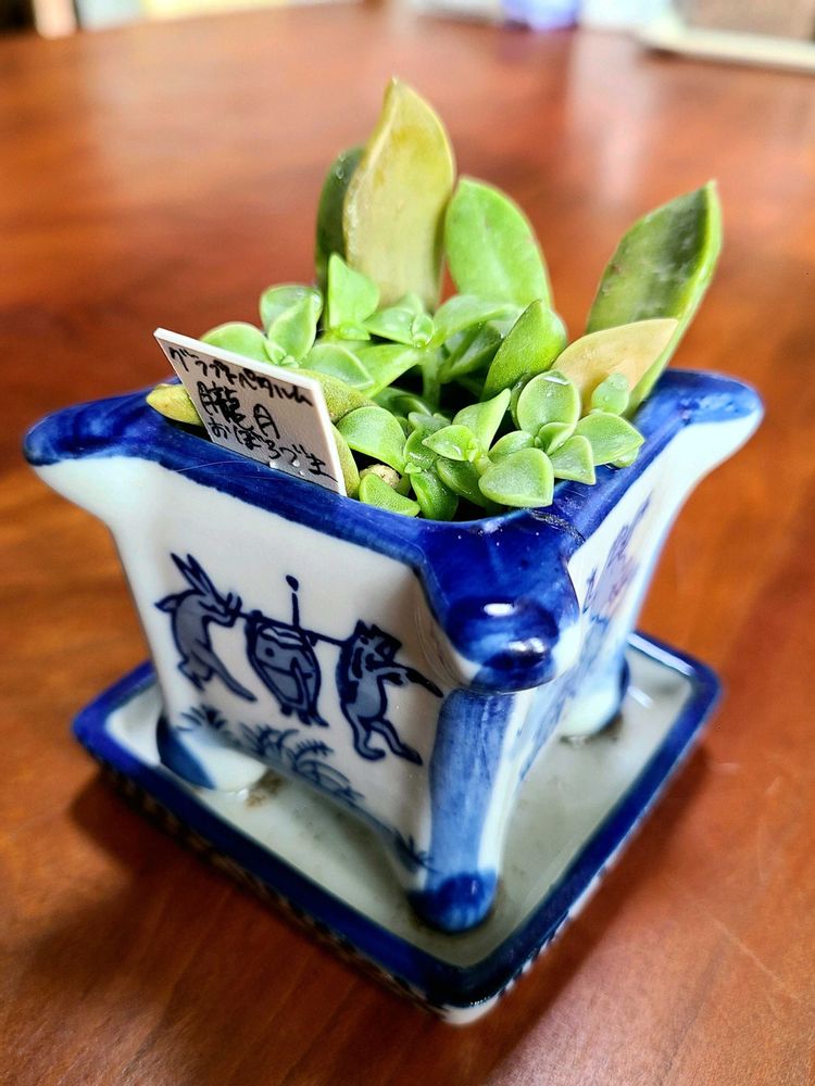 年末の片付けということで、プラグトレイの多肉葉挿しっ子達もいったん整理しました。寒さに強いマッコスと淡雪は親株の鉢に合流させて、つよつよ朧月はまとめて鳥獣戯画の豆鉢にぎゅうぎゅうに植えこみました。水決めで土を流し込んだので、扇風機の風をあてて乾燥中です。他の子達は耐寒性が心配だったり、まだ小さかったりなので、目の細かいザルを利用した葉挿しボックスに、種類ごとにまとめて植え直し、軽く水やりして土を押さえておきました。