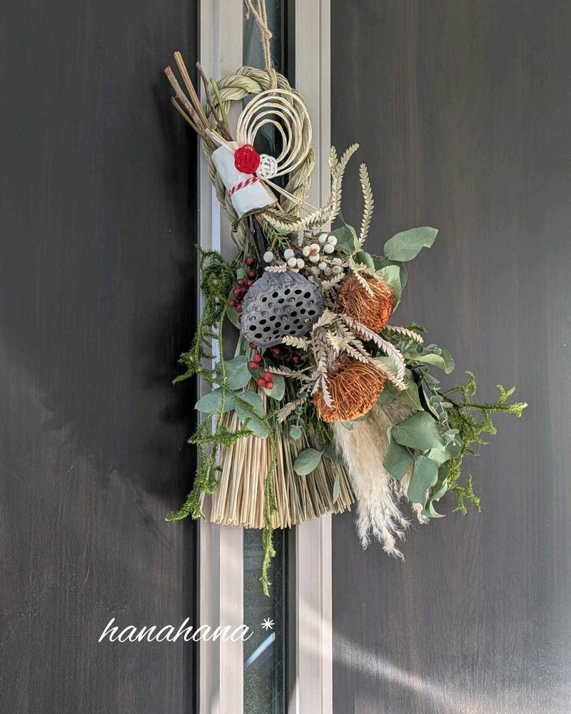 お正月が終わった後は、スワッグとしても飾れるようにしてみました。