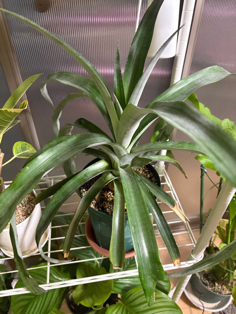 室内避難組のパイナップルさん、さらに葉を広げて結構嵩張るわー😅