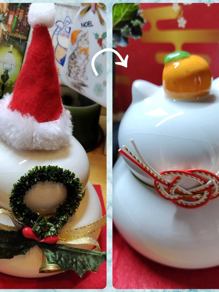 お気に入りのにゃんこさんはクリスマス仕様からお正月仕様に模様替えしました(*´罒`*)ニヒヒ
