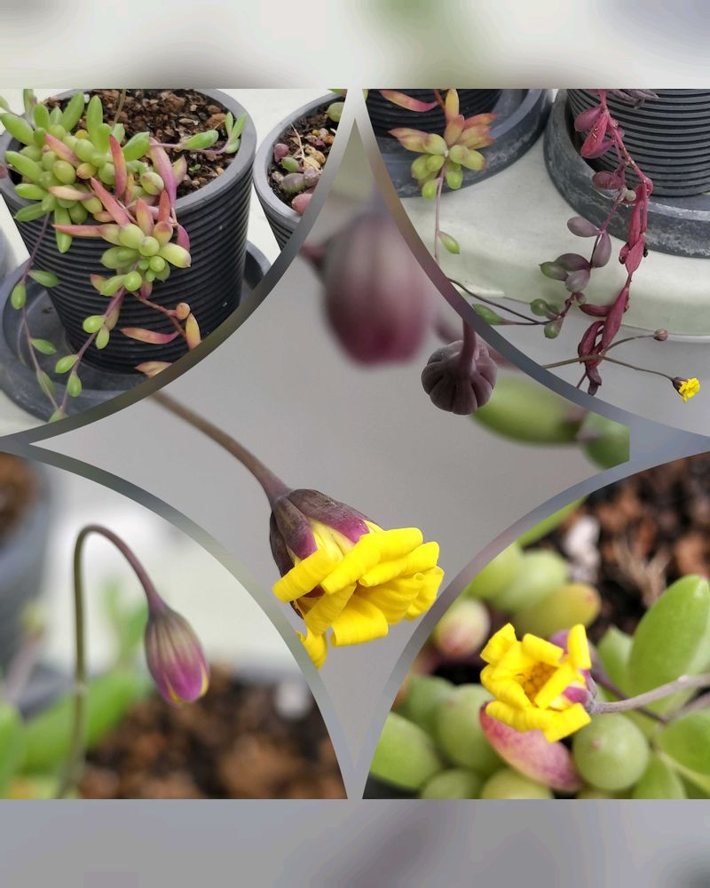 3️⃣ルビーネックレスに黄色い花が咲いています。右側の鉢からもっと長かったのに私が世話してて切れてしまいました😆ショック!!